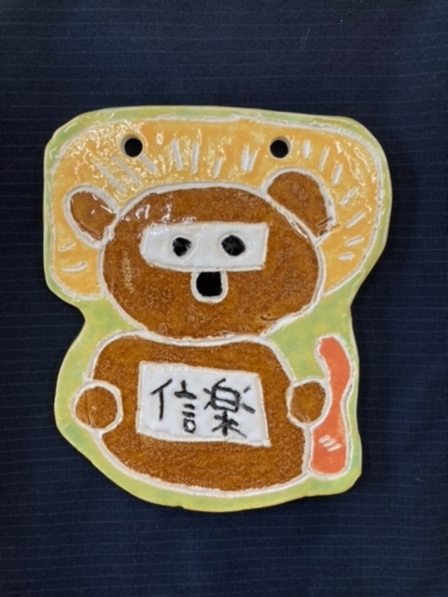 陶板全体が信楽町の形になって います。信楽といえば「たぬき」! 色鮮やかに着色しました。 サイズ 縦13.2㎝×横17㎝×厚み1㎝ 重さ 314g 素材 陶器